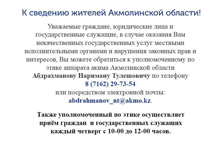К сведению жителей Акмолинской области!