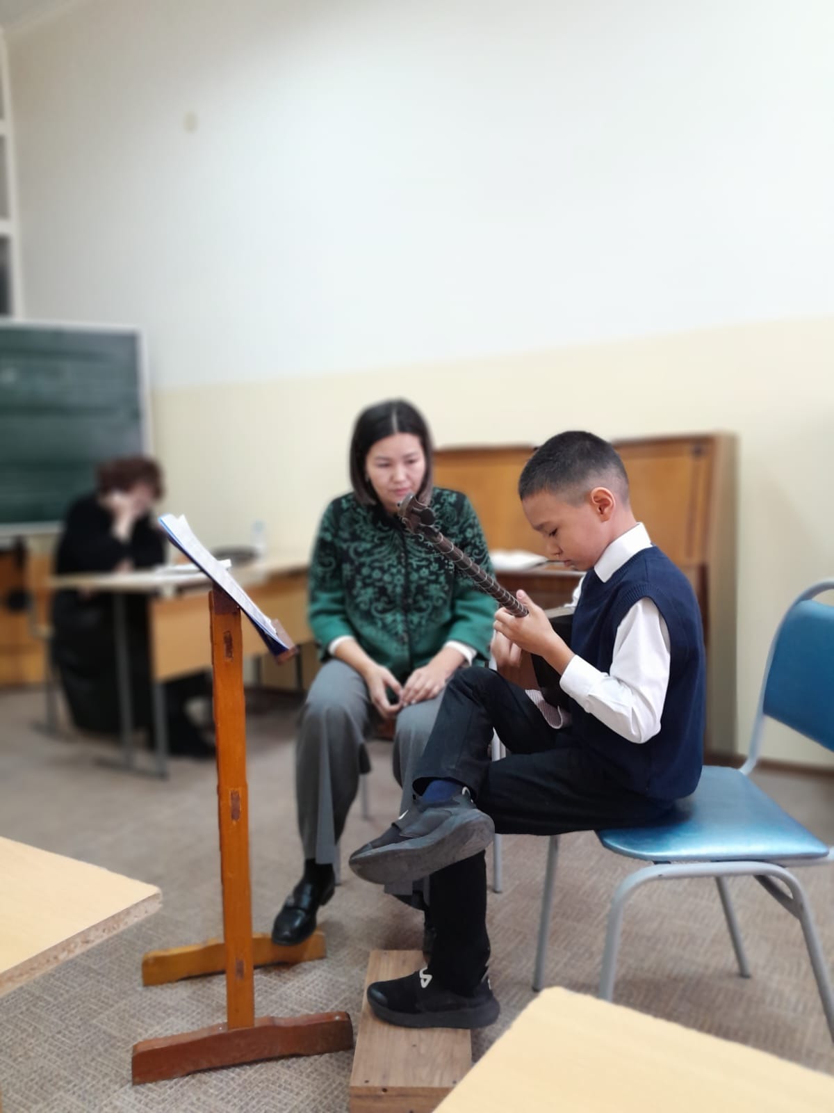 Педагог показала работу с учеником 2 класса Айтмухамбет Динмухамедом. Были продемонстрированы различные формы и методы изучения данной темы. Педагог использует упражнения, направленные на формирование аппликатурных навыков в процессе работы над динамикой, сопровождает объяснение личным показом на инструменте. Доброжелательная атмосфера, доходчивое объяснение помогают ученику достичь поставленных перед ним целей и задач. По окончании урока коллеги отметили положительные моменты, дали свои рекомендации и пожелали дальнейших успехов учителю и ученику.